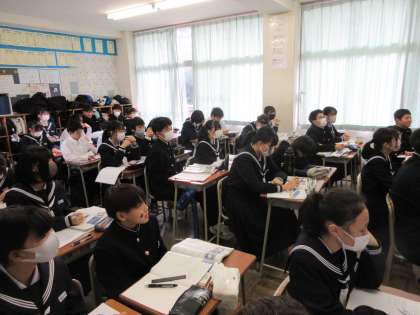 本日の1限目の授業の様子です。 教科は理科でレンズを通して見える像について学習しました。