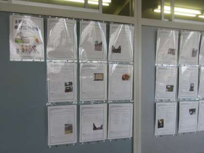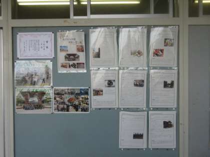 2年生の廊下には「金沢校外学習」まとめレポートが掲示されています。