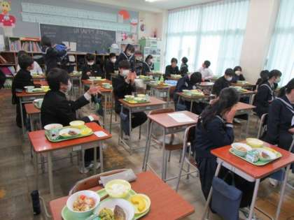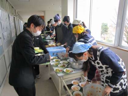 2年生は、手際よく給食準備を進めています。4限が終わるとお腹がぺこぺこの様子です。
