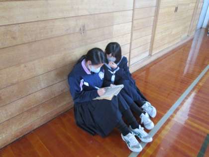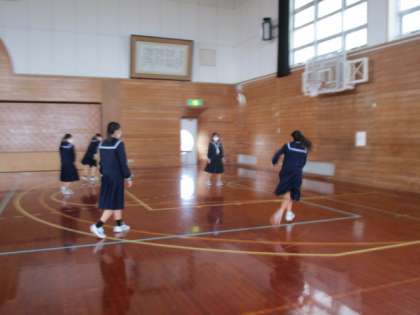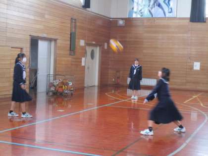 昼休みの体育館では、今日は2年生の女子がバレーボールを楽しんでいました。