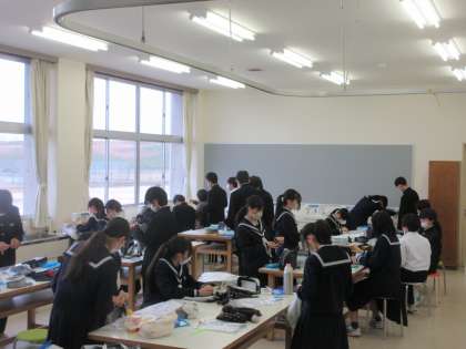 2年生の今日の授業の様子です。 写真上段 2−1 技術 写真下段 2−2 家庭科