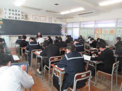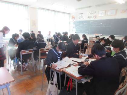 3年生の今日の授業の様子です。 写真上段 3−1 音楽 写真下段 3−2 英語