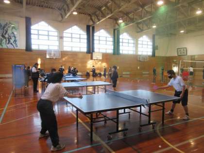 卓球部は、体育館を広々と使い、のびのびと練習していました。