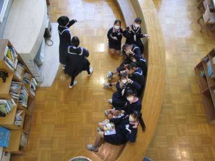 図書室の談話コーナーで楽しくおしゃべりしたり、バナナ廊下の木製ベンチで景色を見ながらおしゃべりしたりと、リラックスして過ごしています。