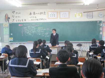 上の写真は、2年3組の社会の授業風景です。関東地方の自然環境についての学習でした。