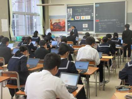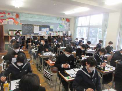 2年生の今日の授業の様子です。 写真上段 2−1 美術 写真下段 2−2 国語