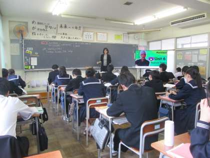 上段の写真は、2年1組の英語の授業風景です。「AよりBが好き」「Bが一番好き」と言えるようになろうと、どの生徒も真剣に教師の発音や解説を聞いていました。