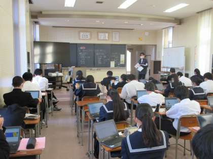本日の3限目の授業の様子です。 教科は音楽で各地の民謡について調べ学習をしました。