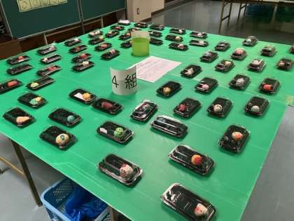 2年生のコモンスペースには美味しそうな和菓子が登場しました。美術で製作した粘土作品です。懇談会中も展示してありますので、ぜひ力作をご覧ください!