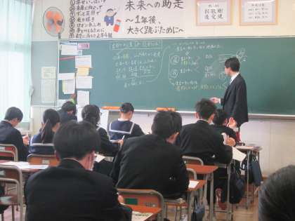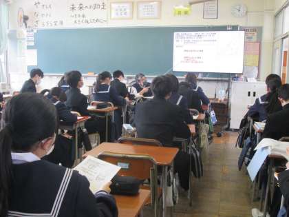 2年3組は数学で、解説を聞きながら練習問題に取り組んでいました。