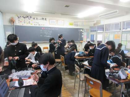 2年生の今日の授業の様子です。 写真上段 2−1 技術 写真下段 2−2 家庭科