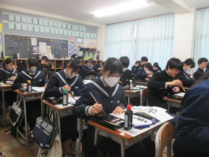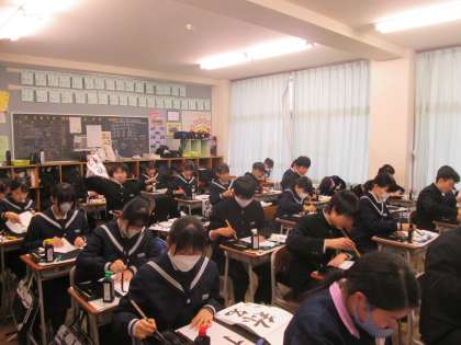 本日5限、3学期始業式の日に行う、校内書き初め大会に向けた練習を行いました。