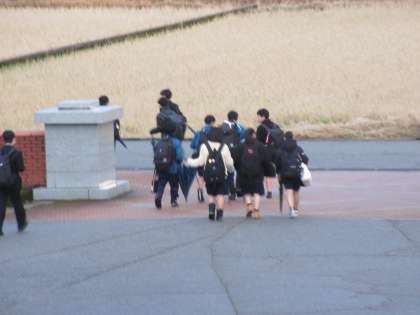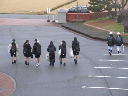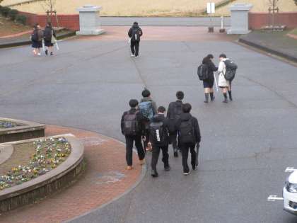 12月21日(木) 下校風景 公開日 2023/12/21 更新日 2023/12/21 news 今日の下校風景です。 部活動を終えて下校する1・2年生の様子です。 雪も降らずナイスタイミングと思っていましたが、最後に下校する生徒たちが校舎出た瞬間から激しく雪が降り始めました。 気を付けて下校して、明日の朝も雪道に注意して安全に登校してください。