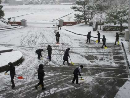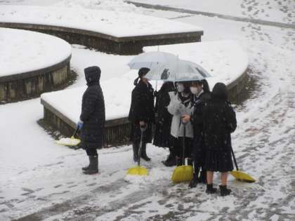 12月22日(金) 除雪当番のみなさん「ありがとうございます」 公開日 2023/12/22 更新日 2023/12/22 news 今朝、路面は雪に覆われていましたが、除雪当番の生徒たちが、前庭を一生懸命除雪してくれて、歩きやすくなりました。 除雪当番の生徒のみなさん「ありがとうございます!」 そして、当番ではないけれど協力してくれた生徒のみなさんも「ありがとうございます!」