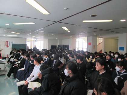 冬休みの生活や学習、SNSの使用に関しての話があり、生徒たちは真剣に聞くことができました。