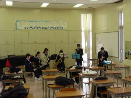 12月25日(月) 冬休み部活動スタート 公開日 2023/12/25 更新日 2023/12/25 news 吹奏楽部は3会場に分かれて練習をしています。 1段目 視聴覚室 2段目 教室 3段目 音楽室