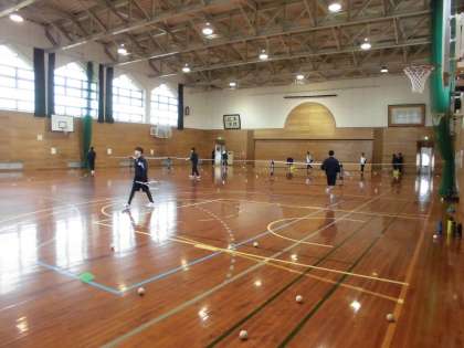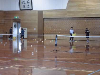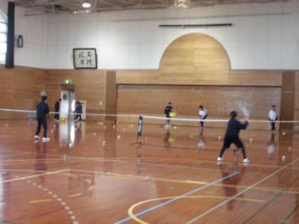 体育館では男子ソフトテニス部が寒さを吹き飛ばすような熱い活動をしていました。