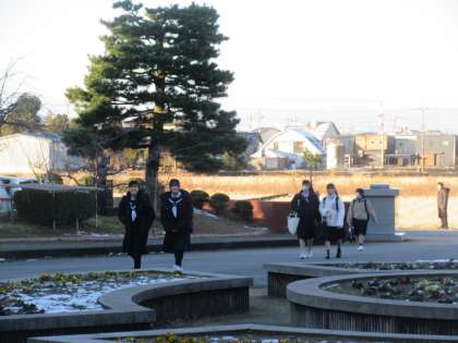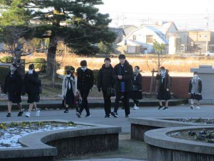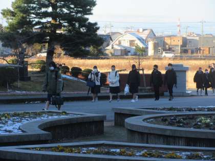 晴れ渡り、その分冷え込みが厳しい中での登校となりましたが、今年度最後の3学期に向けた決意を胸に気持ちを引き締めて登校してきたように感じました。