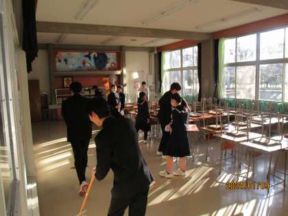 朝は清掃からスタートしました。冬休み中にたまったほこりを一掃して、気分も新たに3学期をスタートさせます。