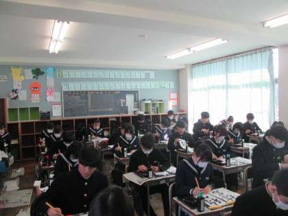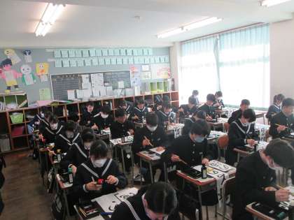 練習したことを思い出し、手本をよく見ながら「称名の滝」と書くことができました。