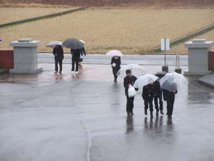 積雪のある道路を歩くことを考えると、濡れた道路を歩くことは苦にはならないですね!