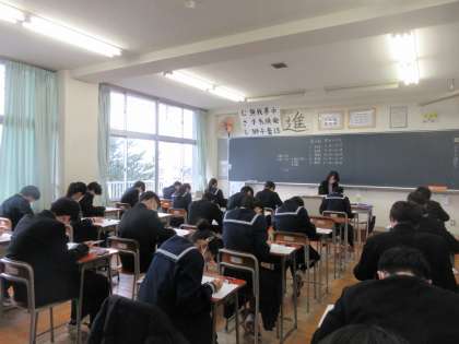 1月10日(水) 3年 第6回実力確認テスト 公開日 2024/01/10 更新日 2024/01/10 3学年 本日、3年生は第6回実力確認テストを行いました。 本来1月5日(金)に実施予定だったのですが、余震が心配であることから3学期に入り、本日実施しました。 今日は私立高校の推薦入試を受検している生徒もおり、教室内は空席が目立つクラスもありましたが、それぞれが、それぞれの進路に向けて努力しています。 写真上から1組、2組、3組のテストの様子です。