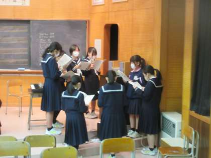 1月12日(金) 3年 授業風景 公開日 2024/01/12 更新日 2024/01/12 3学年 3年3組の音楽の授業の様子です。 パートごとに分かれて合唱曲の音とりをしています。 合唱の練習の様子を見ていると、10月の合唱コンクールのことが蘇ってきます。