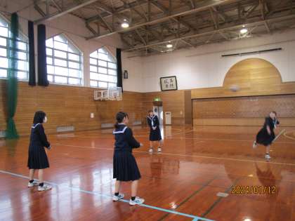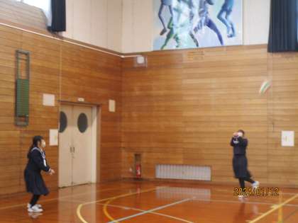 1月12日(金) 2年 昼休みの体育館 公開日 2024/01/12 更新日 2024/01/12 2学年 今日の昼休みの体育館使用は2年生でした。 バレーボールがブームのようで、あちらこちらでバレーボールをしている姿が見られました。体育委員会の生徒も、使用の様子を見守っています。