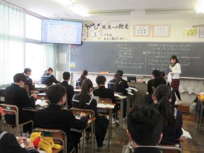 2年生の今日の授業の様子です。 写真上段 2−1 国語 写真下段 2−2 英語