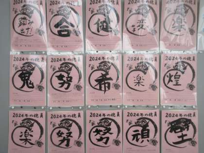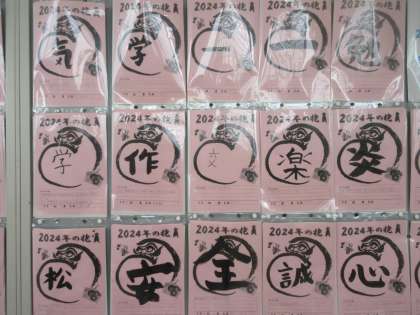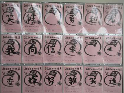 3年生の教室前には、「新年の抱負」を漢字で表した掲示物が展示されています。