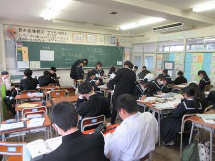 本日の4限目の授業の様子です。 教科は数学で図形に関してグループ学習をしました。