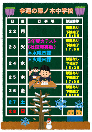 1月22日(月)からの予定