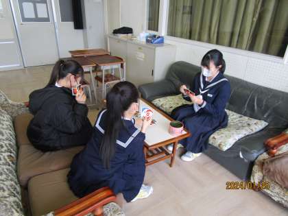 1月25日(木) ほっとルーム 公開日 2024/01/25 更新日 2024/01/25 news 今日のほっとルームでは、剣玉やトランプ、カードゲームで盛り上がっていました。 色々な学年の生徒が集っていて、楽しそうですね。