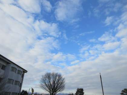 今朝の登校時間の空の様子です。 青空が白い雲の間から顔を出し、とてもキレイな景色でした。