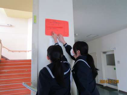 1月29日(月) 休み時間を利用して・・ 公開日 2024/01/29 更新日 2024/01/29 3学年 さすが3年生、休み時間を利用して、各学年に掲示してある学習委員会作成の問題に取り組んでいます。素晴らしいですね!