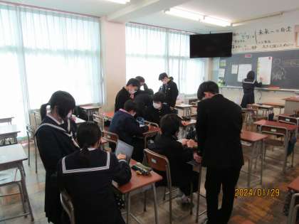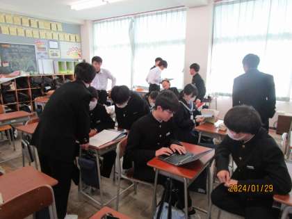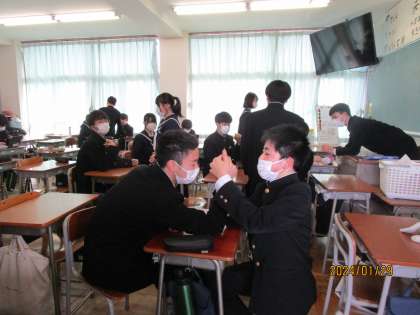 1月29日(月) 昼休みの教室 公開日 2024/01/29 更新日 2024/01/29 2学年 2年生の昼休みの教室は、腕相撲をしたり、勉強を教え合ったり、クロームブックで調べ物をしたりとゆったり過ごしています。