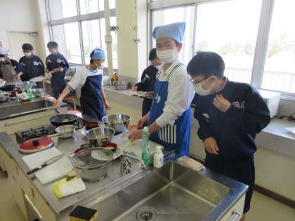 教科は家庭科で調理実習をして、ハンバーグを作りました。