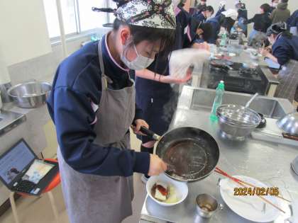 2月5日(月) 1年 家庭科 五感が喜ぶハンバーグ作り
