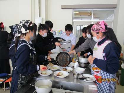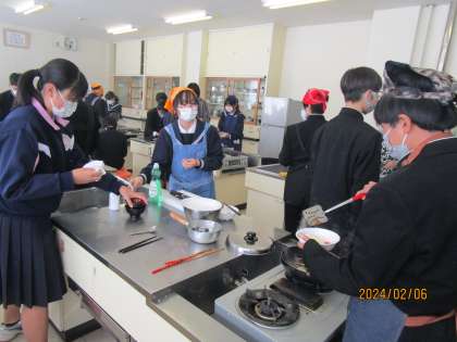 2月6日(火) 1年4組 五感が喜ぶハンバーグ作り 公開日 2024/02/06 更新日 2024/02/06 1学年 1年4組後半チームによる五感が喜ぶハンバーグ作りです。 今日は45分授業でしたが、4組のチームワークの素晴らしいこと!実習を終えた前半チームが、後半チームにアドバイスをしてしっかりサポートしていました。 授業の終わりには片付けも済ませ、無事実習を終えました。
