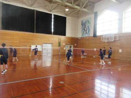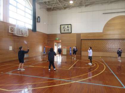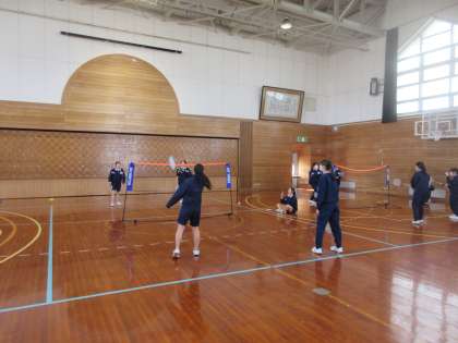 卒業間近となり、担任も生徒に混じってバドミントンを行い、思い出作りをしていました。