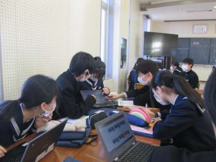 2年2組の「おすすめの曲紹介」の発表の様子です。