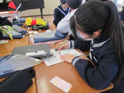グループの人の曲を聴いた後、感想を書いたカードを渡し合いました。