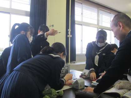 グループでの活動で、手順を確認したあと、安全に留意しながら実験していました。