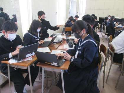 5限の授業の様子です。グループでおすすめの曲紹介をしました。