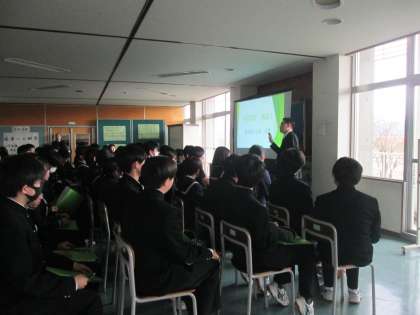 事前に配布された資料のページを見ながら聴くなど、どの生徒も真剣に参加することができました。