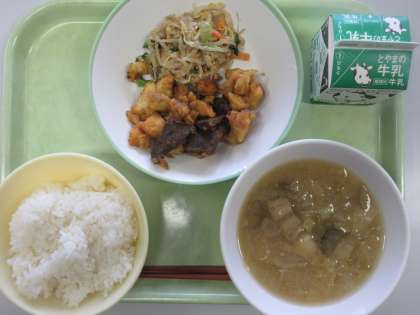 2月19日(月) 今日の給食 公開日 2024/02/19 更新日 2024/02/19 news 今日の給食のメニューは以下のとおりです。 〇ごはん 〇牛乳 〇鶏肉とレバーのカレー風味 〇ナムル 〇たら汁 「たら汁」のたらの身が、コロコロとちょうどよい柔らかさで美味しかったです。