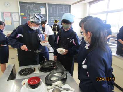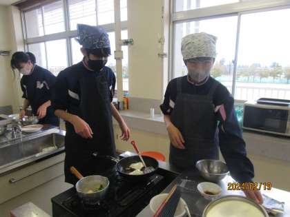2月19日(月) 1年2組 五感が喜ぶハンバーグ作り