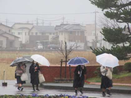 2月20日(火) 登校風景 公開日 2024/02/20 更新日 2024/02/20 news 今朝の登校風景です。 雨の中の登校となりました。 昨日よりは風は強くなかったのですが、一時的に強くなり、上着がビショビショになって登校してくる生徒もいました。 明日からは学年末考査が始まります。 学年末考査前最後の授業を頑張りましょう!