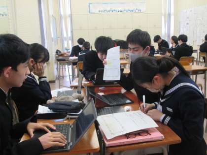 今日は、グループでおすすめの曲を紹介し合いました。「落ち込んだとき、この曲を聴くと元気になれる」と発言した仲間に、「また、うちで聴いてみるね」と返す生徒の様子も見られました。