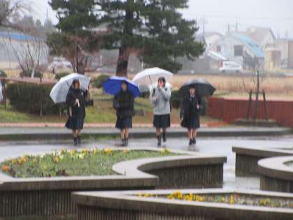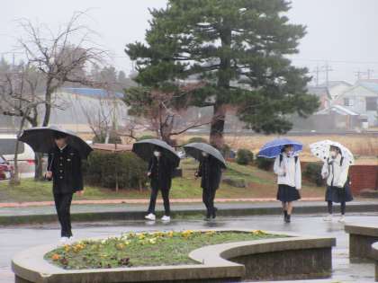 2月21日(水) 登校風景 公開日 2024/02/21 更新日 2024/02/21 news 今朝の登校風景です。 大粒の雨が降る中の登校となりました。 今日から学年末考査がスタートです。 家で遅くまで勉強してきたのか、ちょっと眠そうな感じの生徒が多いように感じました。 今日は、給食終了後下校なので、午前中頑張りましょう!